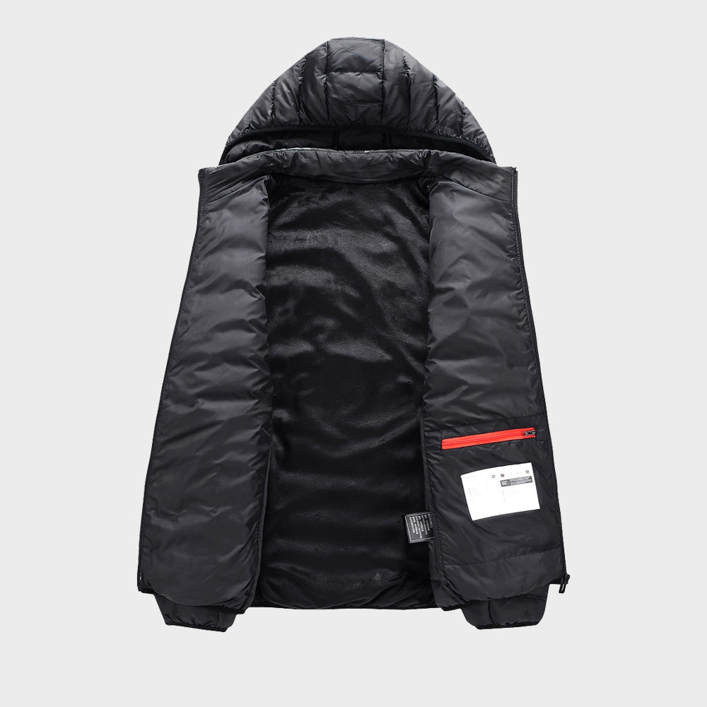 Note that the feeling of warmth is gentle and evenly distributed. No unpleasant hot spots are felt when wearing the jacket.