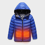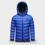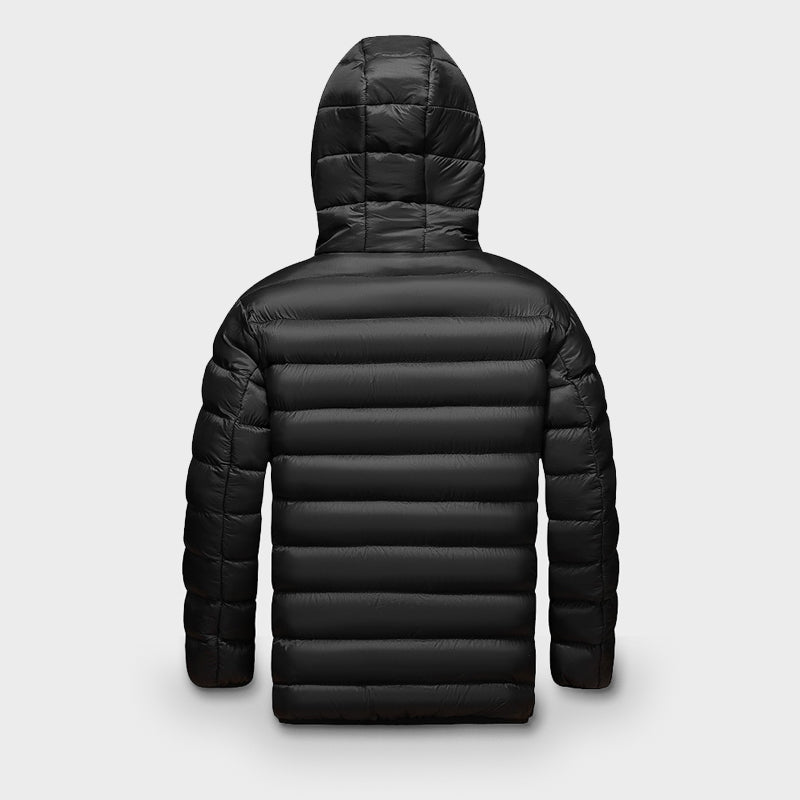 Horalpes heated jacket for children with a removable hood. Designed to offer optimal lightness while preserving its windproof and water-repellent qualities. Features 5 heating zones providing a pleasant and warming heat flow.